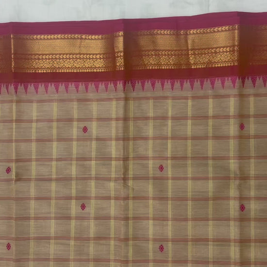• Colour : Traditional and Elegant Korvai Kanchi cotton Saree with motifs scattered across saree and Zari border