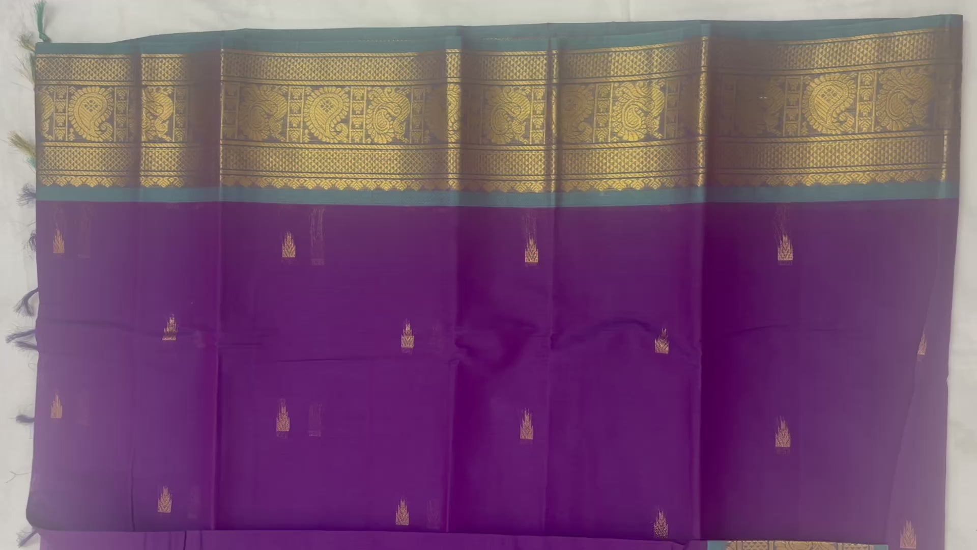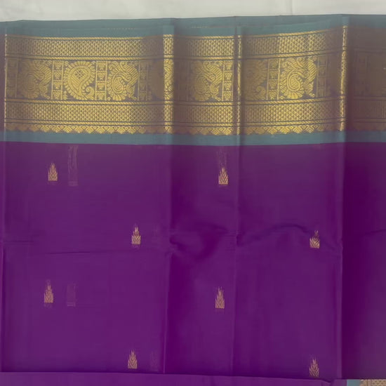 - Colour : Purple body / teal green Zari border & Zari pallu